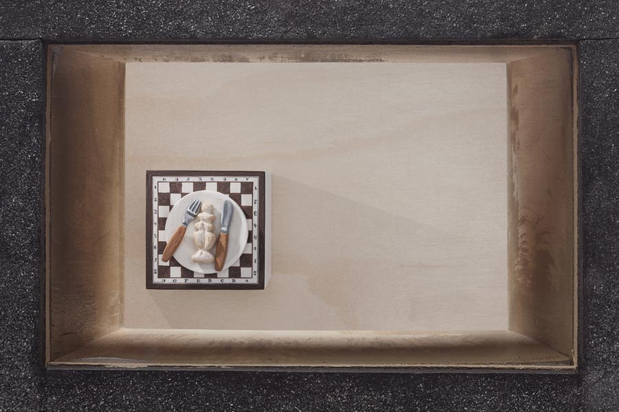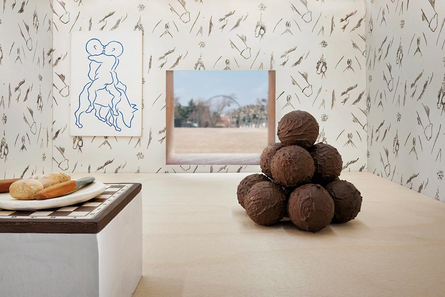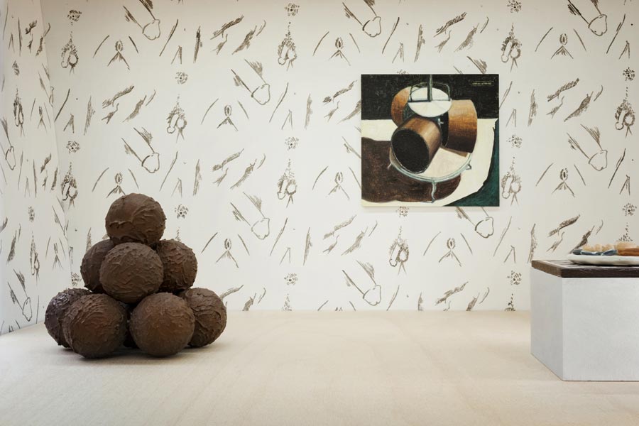 Aus diesem bedeutenden Anlass realisieren Caroline Bachmann und Stefan Banz erstmalig eine eigene Ausstellung in der Kunsthalle Marcel Duchamp. Sie ist inspiriert von dem vor genau 100 Jahren entstandenen Gemälde Broyeuse de chocolat n° 1 – einem frühen Schlüsselwerk von Duchamp, das dessen Begeisterung für Schokolade und Maschinen gleichermaßen vereint. Unter dem Titel La Broyeuse de chocolat präsentieren Bachmann und Banz auf der Mathildenhöhe eine weit ausgreifende internationale Gruppenausstellung mit neun Künstlerinnen und Künstlern aus fünf Ländern und versammeln bedeutende Werke nach Marcel Duchamp (F), Meret Oppenheim (CH), Joseph Beuys (D), Dieter Roth (CH), Ed Ruscha (USA), Aldo Walker (CH), Robert Gober (USA), Vik Muniz (BR) und Sonja Alhäuser (D) – in kleinem Maßstab und deshalb umso eindrucksvoller.