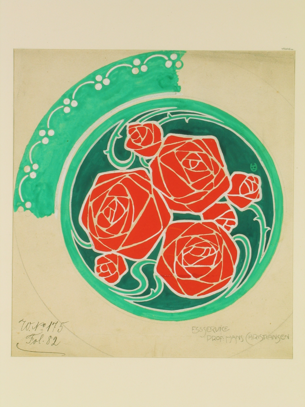 Hans Christiansen, Entwurf für einen Dessert-Teller mit Rosendekor, 1900/01, Museumsberg Flensburg