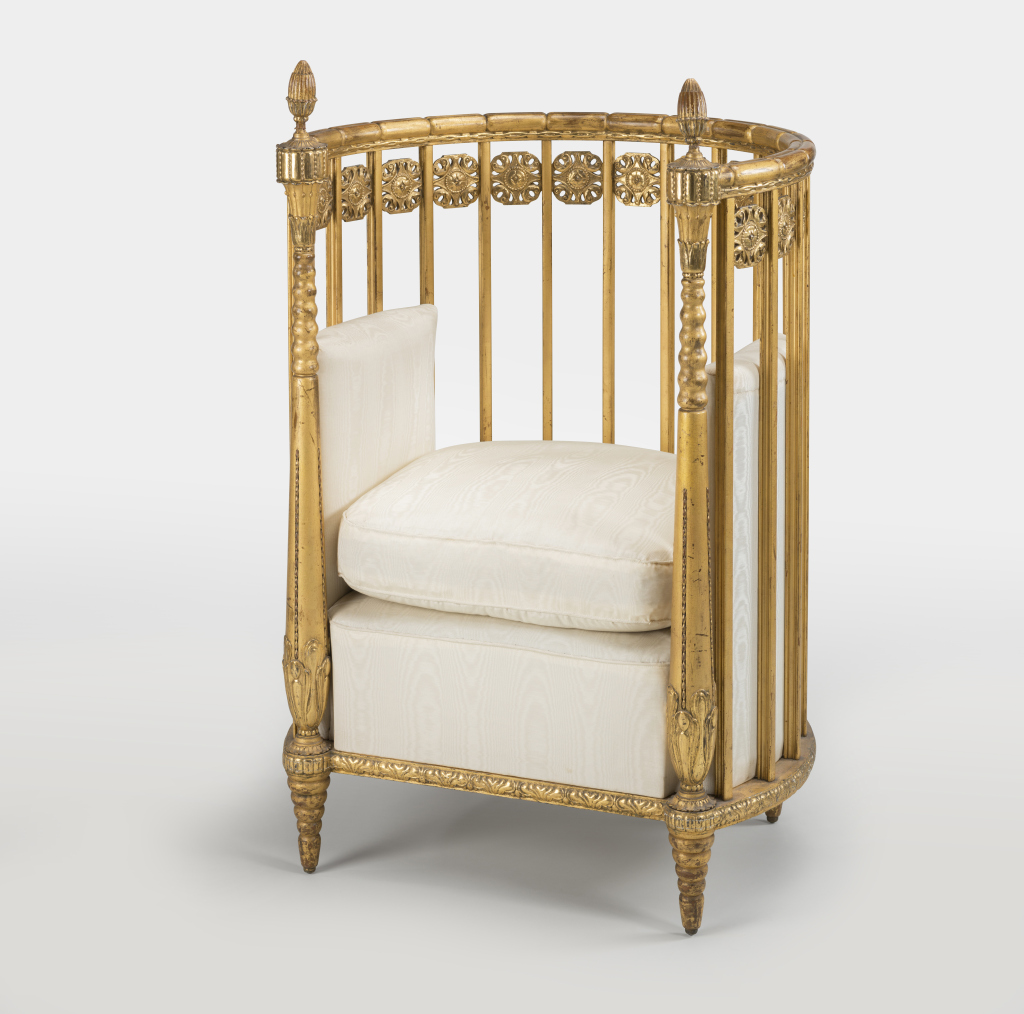 Hans Christiansen, Sessel aus dem Goldenen Salon, 1910/1911, Institut Mathildenhöhe, Städtische Kunstsammlung Darmstadt, Dauerleihgabe der Jubiläumsstiftung der Stadt- und Kreis-Sparkasse Darmstadt, Foto: Gregor Schuster