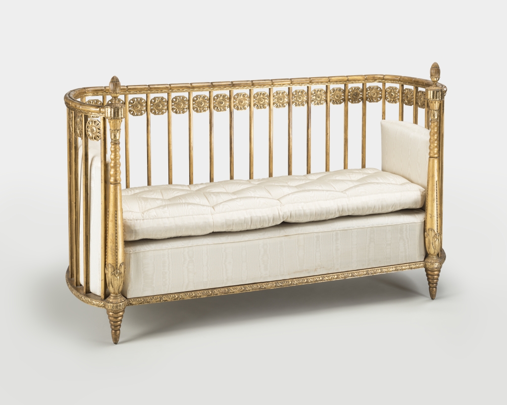 Hans Christiansen, Sofa aus dem Goldenen Salon, 1910/1911, Institut Mathildenhöhe, Städtische Kunstsammlung Darmstadt, Dauerleihgabe der Jubiläumsstiftung der Stadt- und Kreis-Sparkasse Darmstadt, Foto: Gregor Schuster
