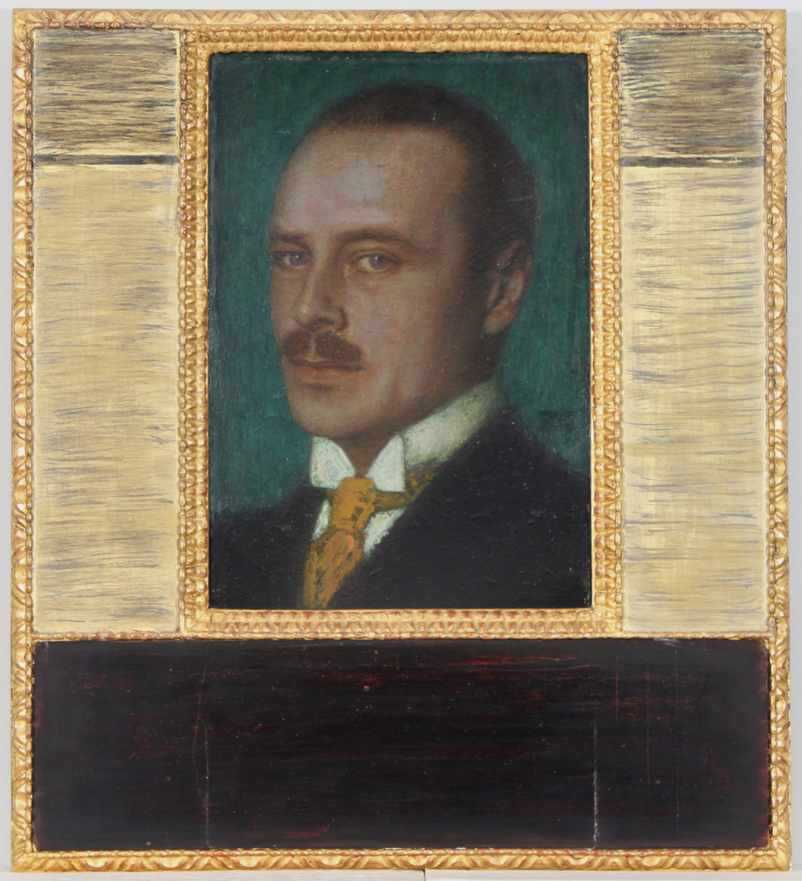 Franz von Stuck (1863-1928) Porträt Großherzog Ernst Ludwig von Hessen und bei Rhein, um 1907 Öl auf Karton, Holzrahmen (geschnitzt, vergoldet, schwarz bemalt), 35 x 24,5 cm (52 x 46,5 cm), Institut Mathildenhöhe / Städtische Kunstsammlung Darmstadt