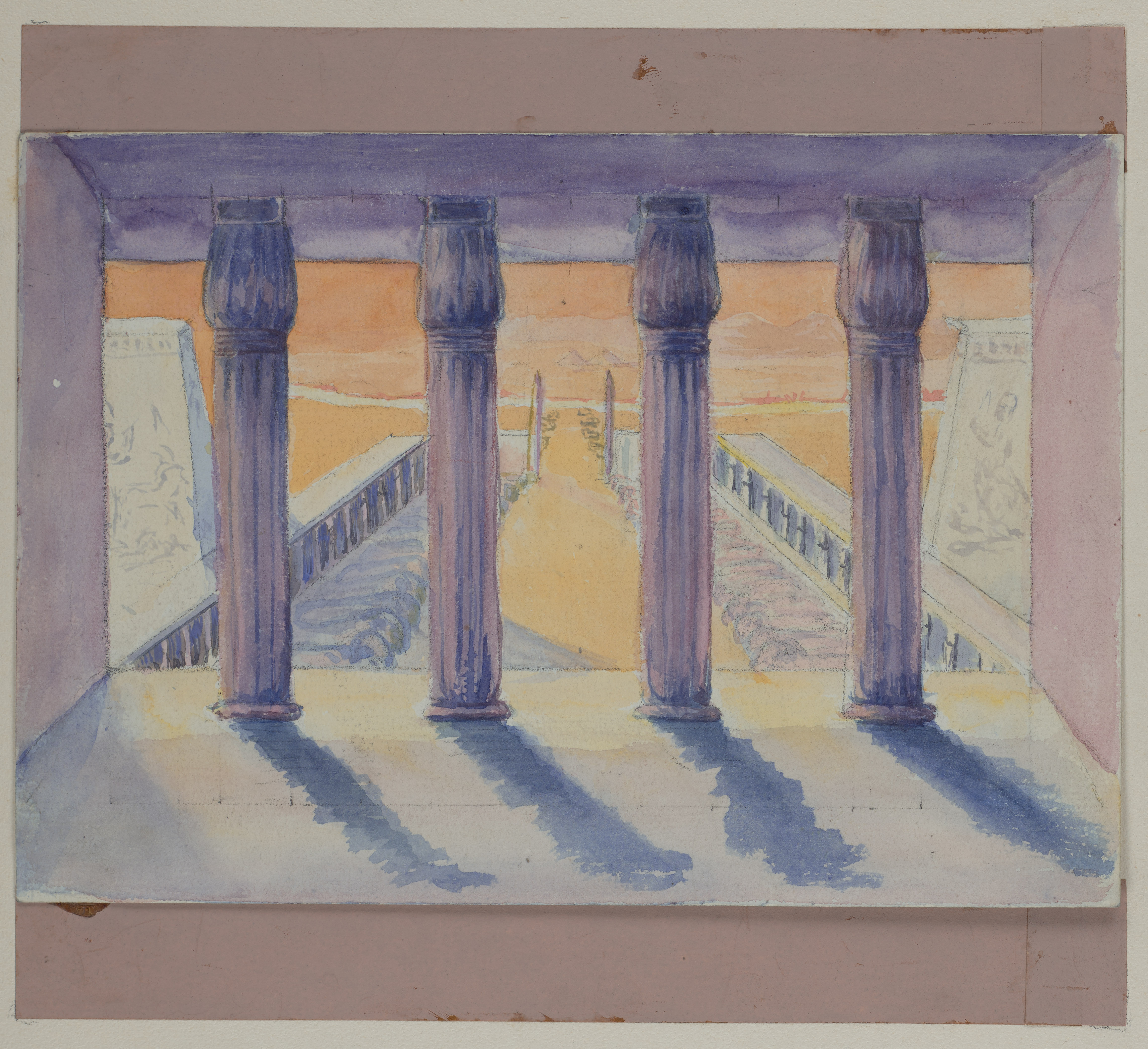 Großherzog Ernst Ludwig, Bühnenbildentwurf zu „Aida“, 1914, Aquarell, Foto: Universitäts- und Landesbibliothek Darmstadt
